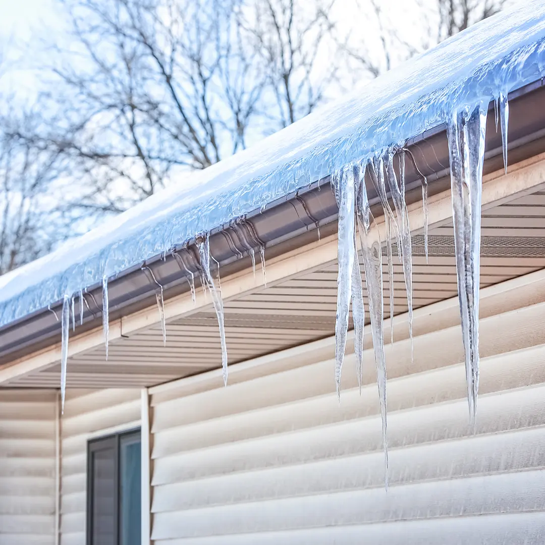 This cycle is most common during sunny days and freezing nights, causing ongoing melting and refreezing that pushes water under shingles and into the attic, walls, and living spaces.